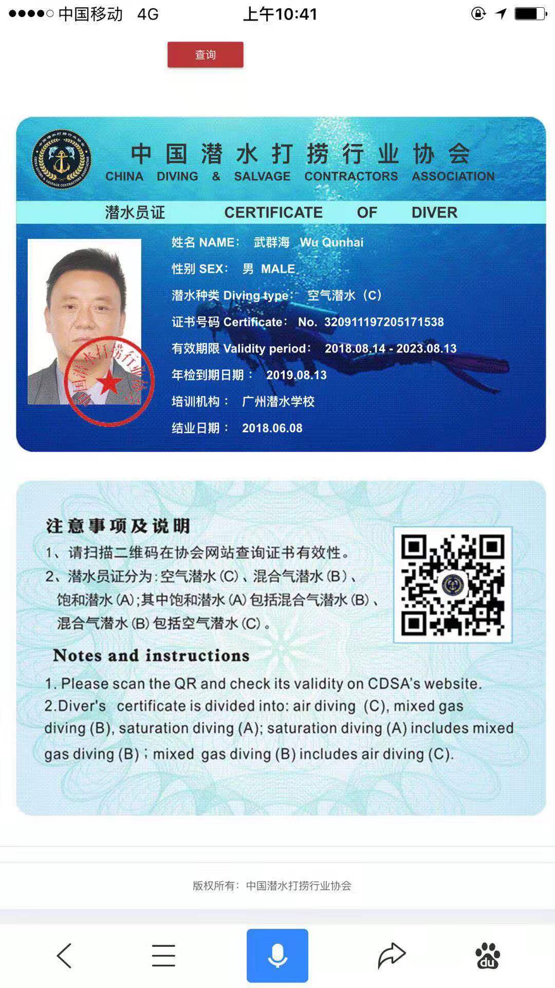 公司現有施工隊伍五個,專業(yè)潛水員30余人,技術人員20余人,多次參加了 重點項目施工:如三門核電廠,浙江跨海大橋,內蒙烏錫鐵路黃河特大橋,寧杭高鐵,京福高鐵等水下切割、水上、水下拆除,水下混凝土灌注,水下鋼護筒切割等任務。
